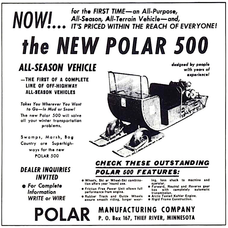 1962 POLAR MANUFACTURING ADBy arcticinsider - January 15, 20240600FacebookTwitterPinterestWhatsApp Download Version Download 2 File Size 273.98 KB File Count 1 Create Date January 15, 2024 Last Updated February 4, 20241962 POLAR MANUFACTURING ADThis photo is part of the ArcticInsider.com Collection