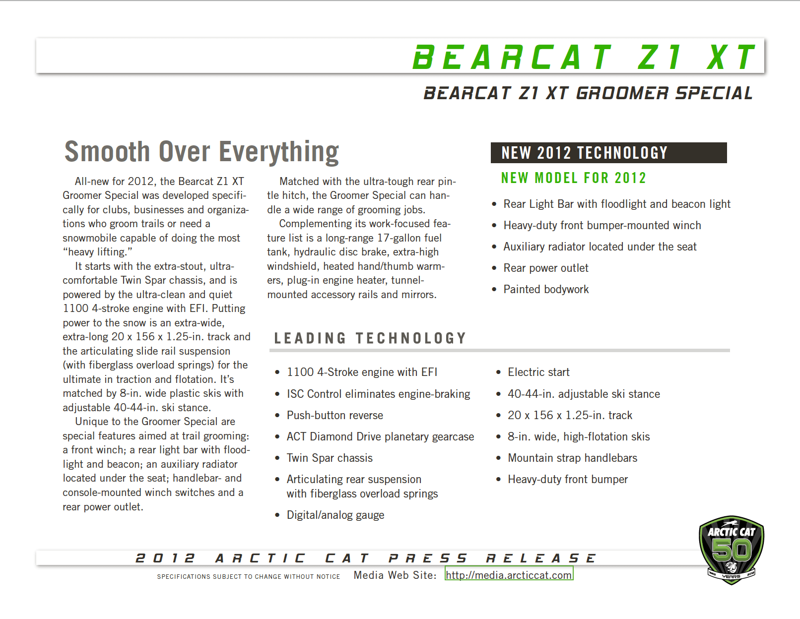 Home 2012 ARCTIC CAT SNOWMOBILES BEARCAT GS MEDIA KIT PDF